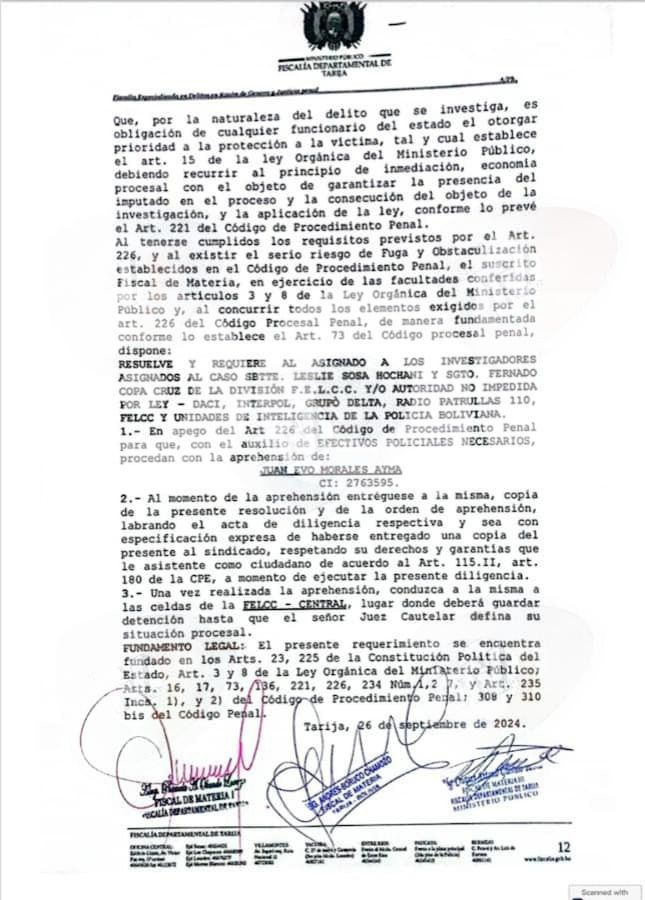 Este nuevo giro en las investigaciones ha causado gran revuelo en el país, ya que Morales, quien enfrenta varias acusaciones desde que dejó el poder, ahora deberá responder ante la justicia por estos cargos graves. Las autoridades han señalado que la orden de aprehensión se ejecutará de inmediato para garantizar el desarrollo adecuado del proceso y evitar cualquier tipo de interferencia.